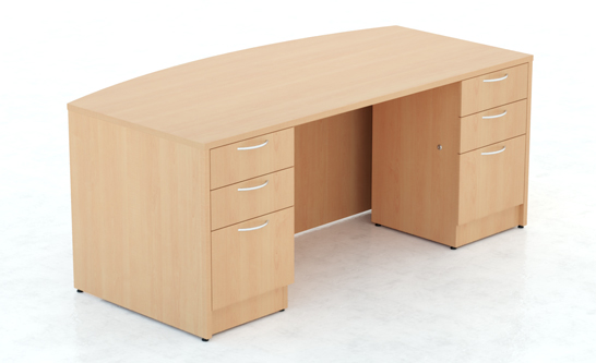 Bow front Desk shell with full Modesty and 2- Box/Box/File full pedstal