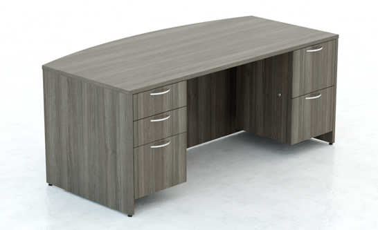 Bowfront Desk shell with full Modesty and 1- Box/Box/File & 1- File/File hanging pedstal