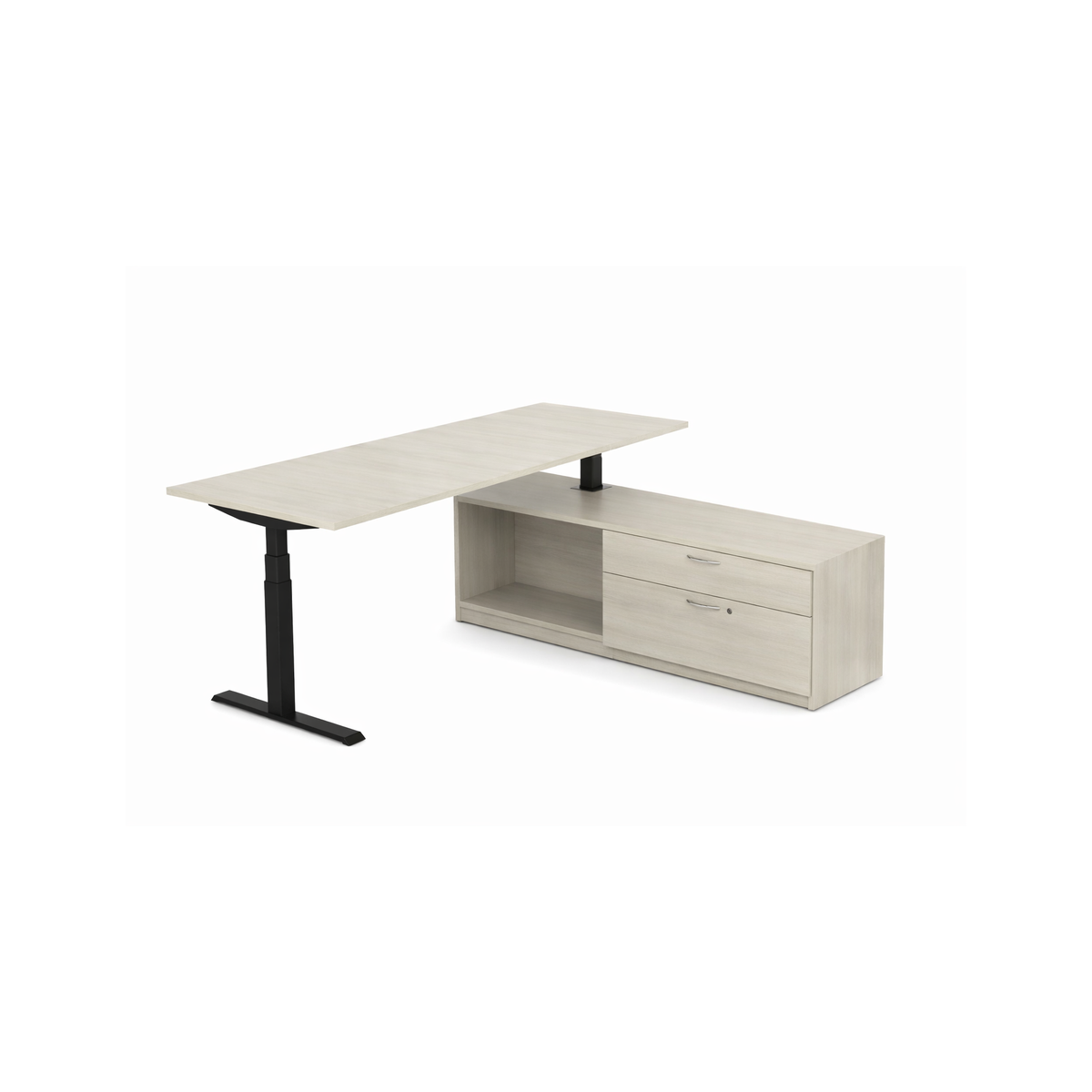 - Integrated Low Credenza: Combines open storage and drawer space for organized, clutter-free workflow