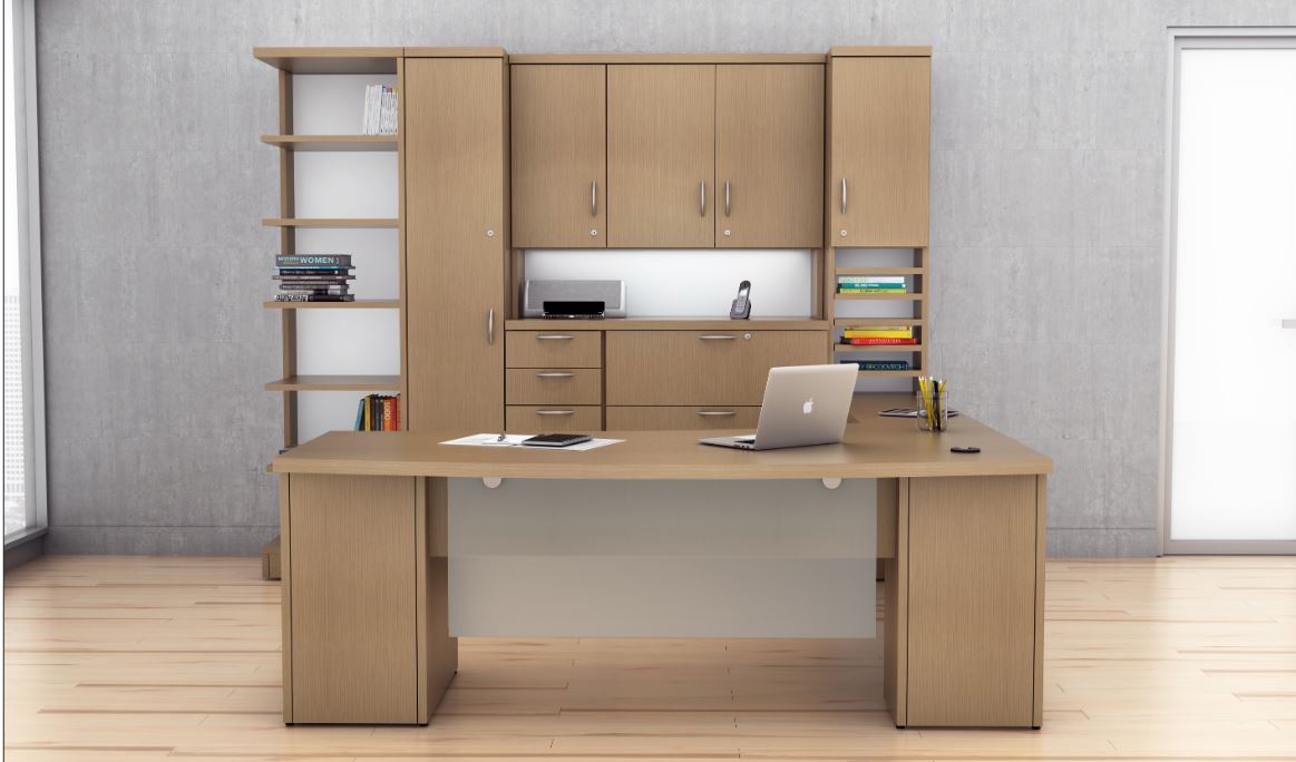 This layout combines modern materials, clean lines, and practical storage to create a cohesive executive workspace that reflects professionalism and style. - Durable Commercial-Grade Construction